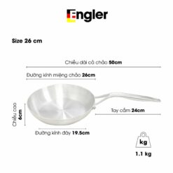 Chảo inox 304 sâu lòng Engler EL3860 size 22cm đáy 5 lớp nguyên khối dùng cho mọi loại bếp